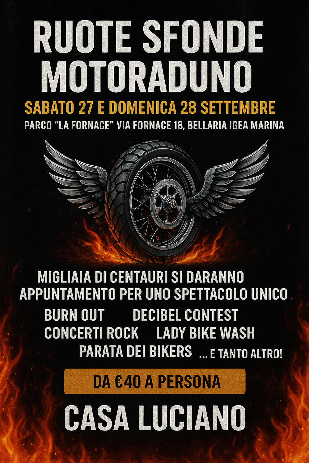 Sabato 27 e domenica 28 settembre torna a Bellaria Igea Marina l’evento motociclistico più scoppiettante della Riviera! 📍 Parco “La Fornace” – via Fornace 18, Bellaria Igea Marina Migliaia di centauri (e non solo!) si daranno appuntamento per uno [...]