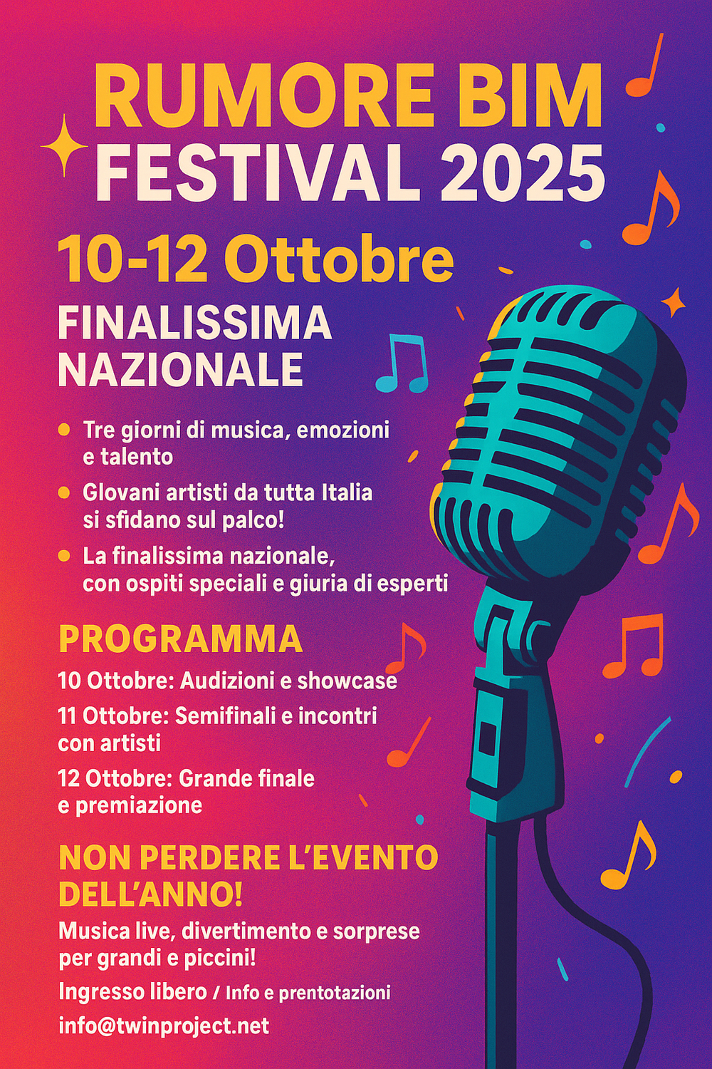 ✨🎤 RUMORE BIM FESTIVAL 2025 – FINALISSIMA NAZIONALE 🎤✨ 📅 10 – 12 ottobre 2025 📍 Bellaria Igea Marina La città si prepara ad accogliere la 4ª edizione del Rumore BIM Festival, il contest artistico multidisciplinare dedicato a Raffaella Carrà. [...]